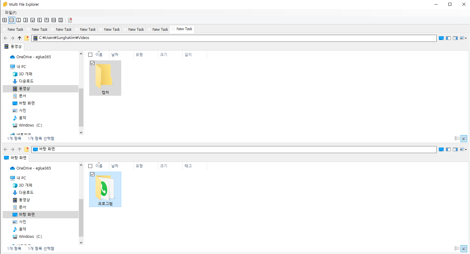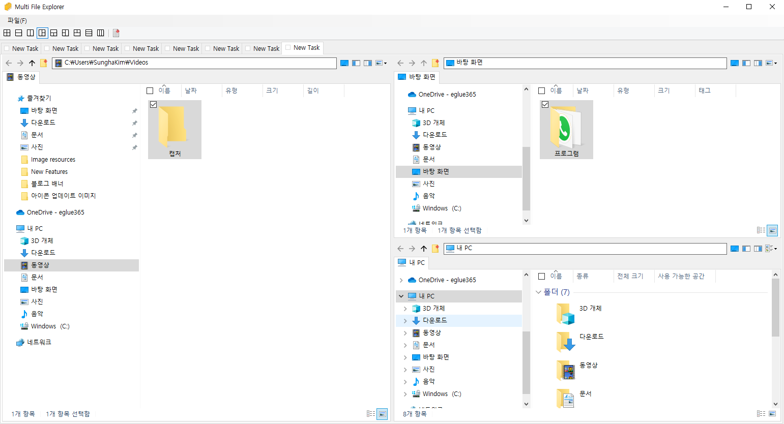상단 탭 추가를 통해 멀티 파일 익스플로러 내 여러 개의 탭 화면을 추가해 활용할 수 있습니다.