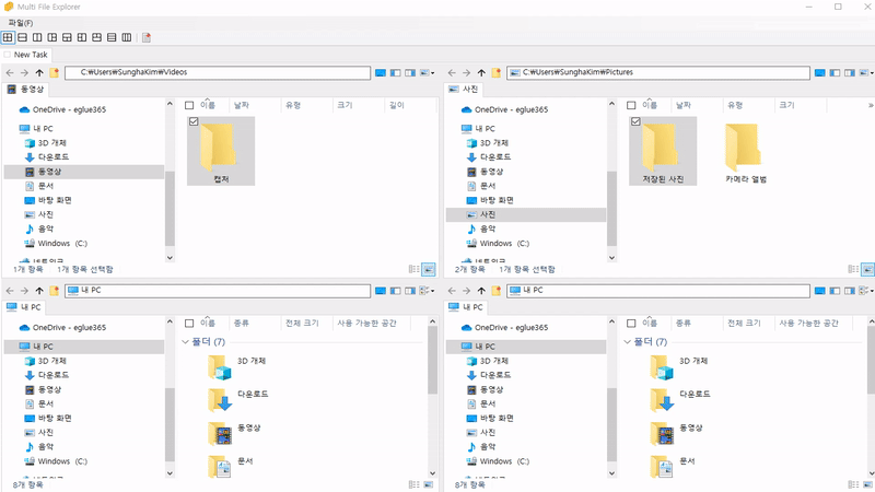 여러 분할 보기 옵션을 지원하는 멀티 파일 익스플로러 (Multi File Explorer)