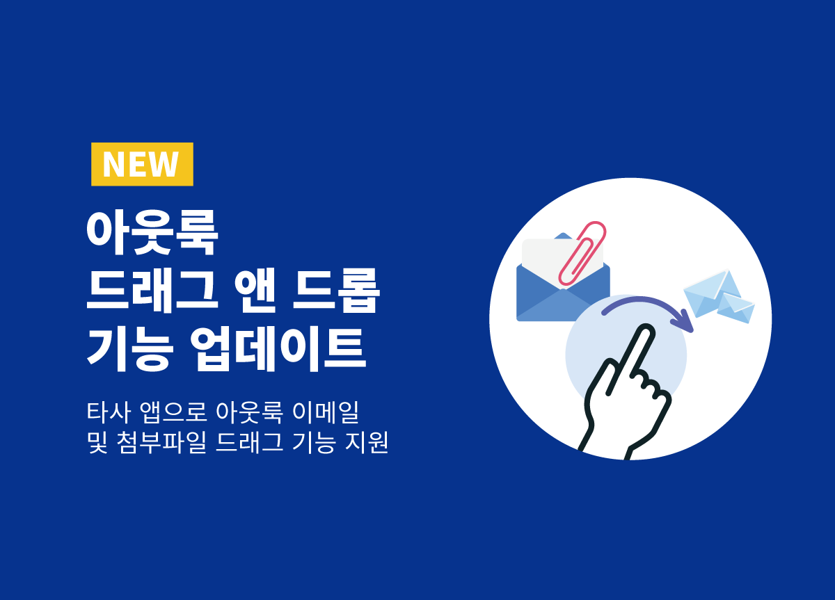 아웃룩 드래그 앤 드롭 (Drag & Drop) 기능은 아웃룩 이메일과 첨부파일을 손쉽게 원하는 곳으로 저장 혹은 공유할 수 있게 지원합니다.