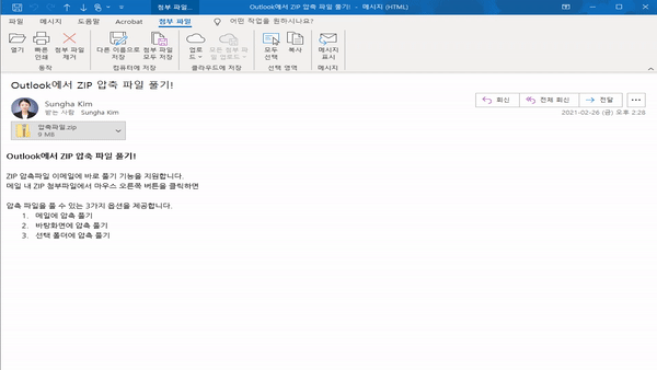 아웃룩에서 손쉽게 압축 첨부파일을 확인하고 관리해보세요!