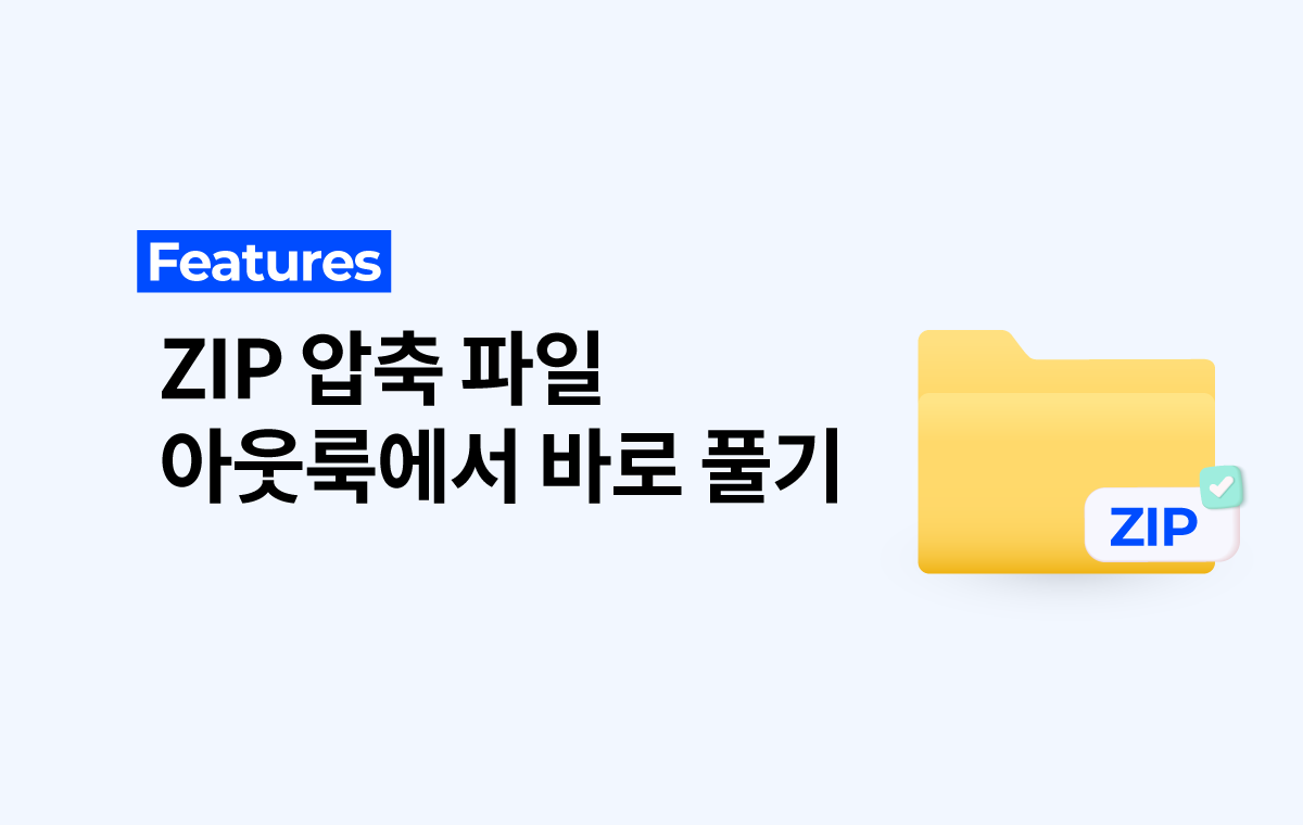 아웃룩에서 압축 첨부 파일을 빠르게 확인하고 업무를 처리할 수 있도록 하는 첨부 파일 압축 풀기 옵션을 새롭게 추가했습니다. 압축 파일을 다운로드 받아 압축을 풀어 파일을 확인하는 중간 과정을 생략할 수 있기 때문에 업무 생산성을 향상 시킬 수 있습니다.