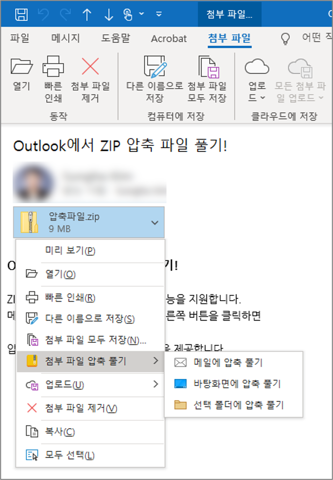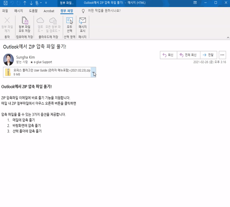 아웃룩에서 손쉽게 압축 첨부파일을 확인하고 관리해보세요!