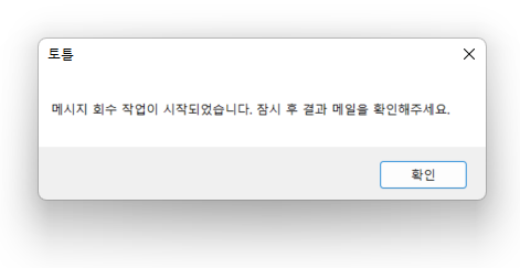 팝업창이 나타나면 확인을 눌러주세요. 잠시 후 메시지 회수 결과를 알려주는 알림 이메일이 도착합니다.