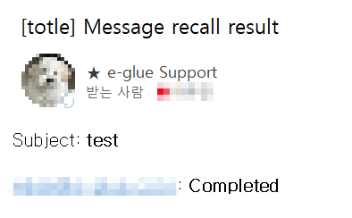 위 메시지가 보이면 메일 회수가 성공적으로 완료되었음을 뜻합니다.
