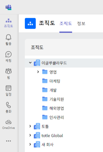 조직도에 들어가면 우리 기업에 속한 구성원들을 이렇게 트리 형태로 확인할 수 있습니다.