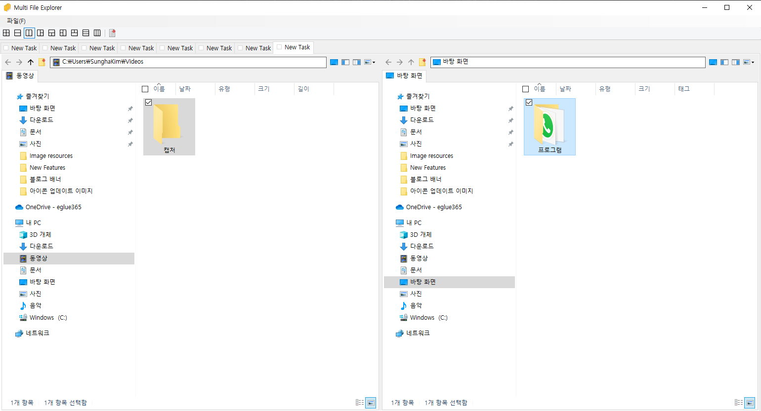 상단 탭 추가를 통해 멀티 파일 익스플로러 내 여러 개의 탭 화면을 추가해 활용할 수 있습니다.
