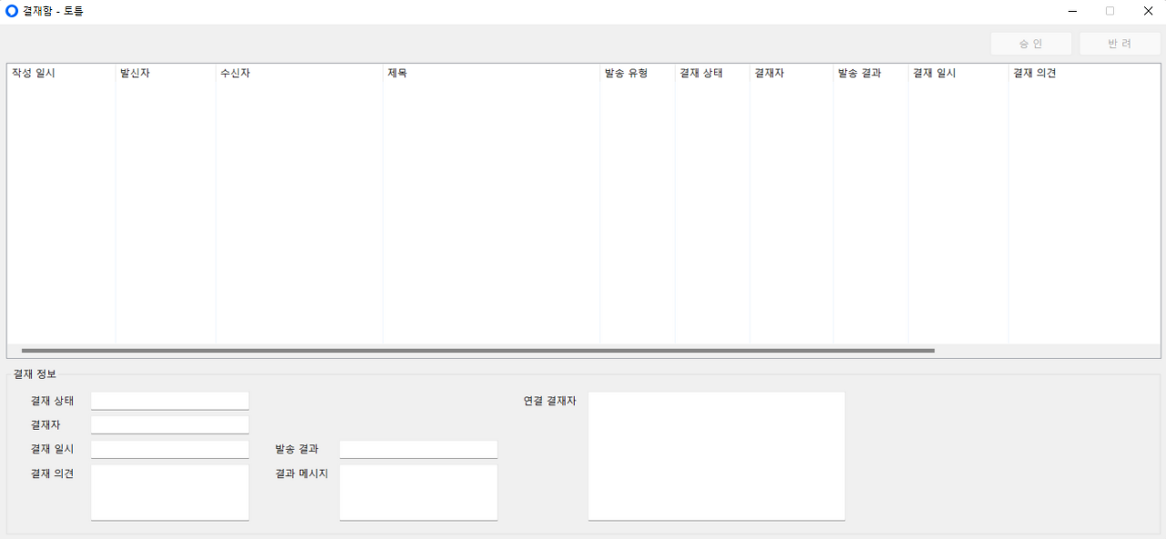 결재함도 기안함과 마찬가지로 승인 메일과 관련된 정보들을 확인하고 관리할 수 있습니다.