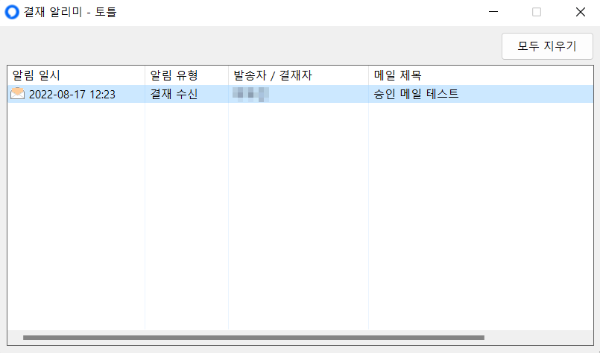 마지막으로 결재 알리미 기능은 승인 요청 건에 대한 결재 완료 현황을 알림으로 제공합니다.