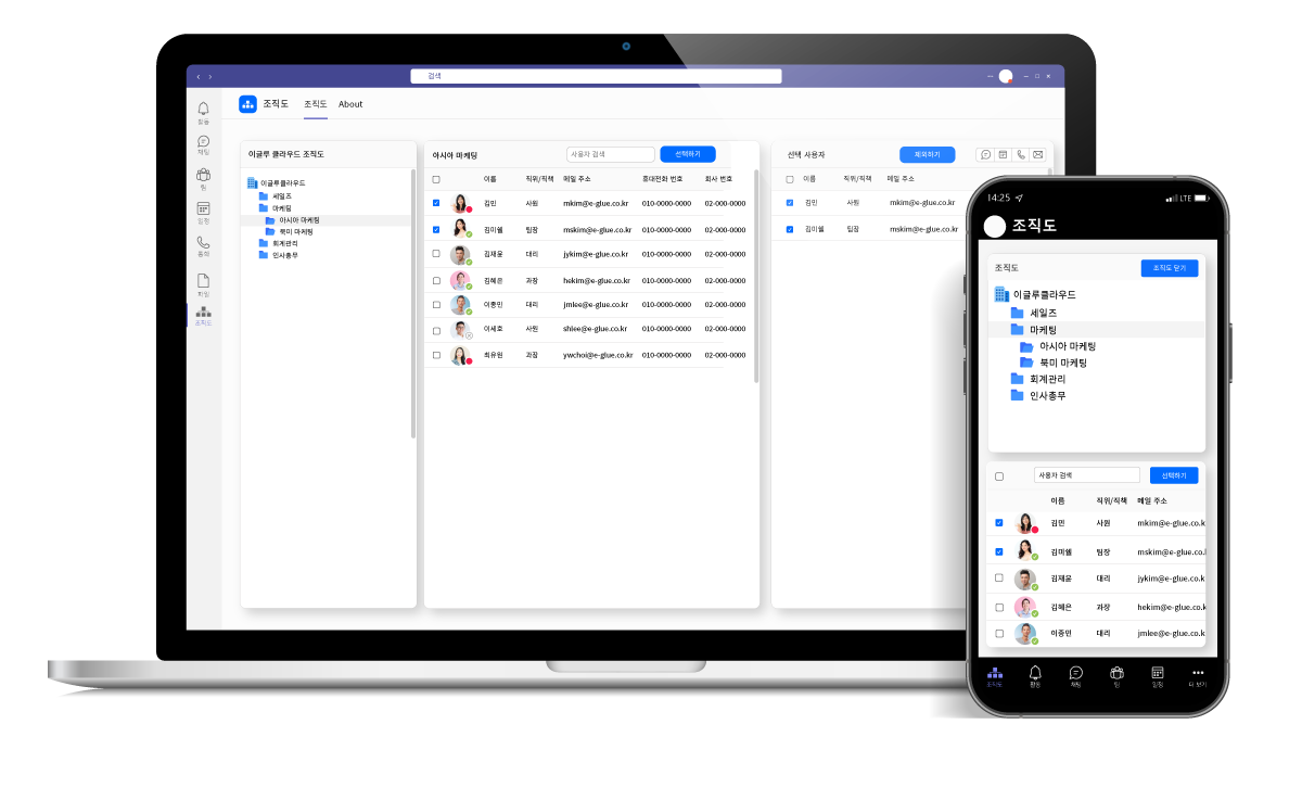 조직도에서 확인한 정보를 바탕으로 다양한 채널에서 커뮤니케이션을 이어 나갈 수 있습니다.