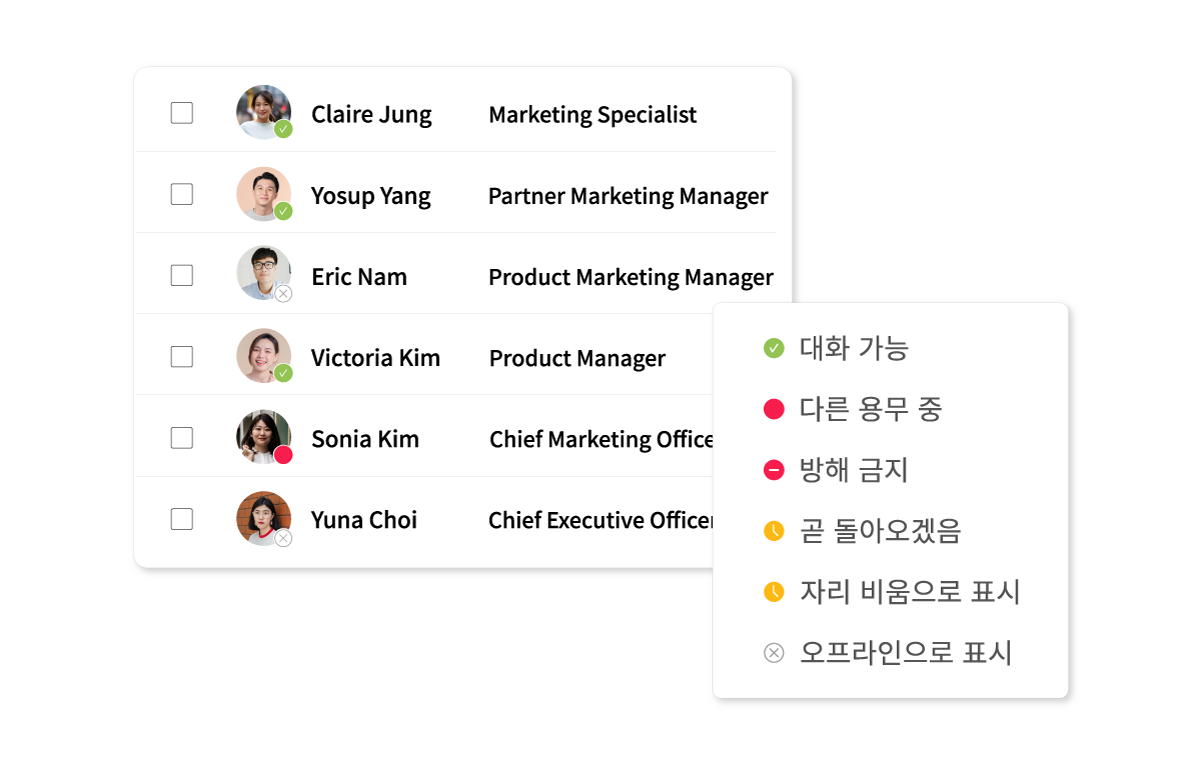 뿐만 아니라 임직원의 프로필 사진과 상태 정보도 함께 확인할 수 있습니다.