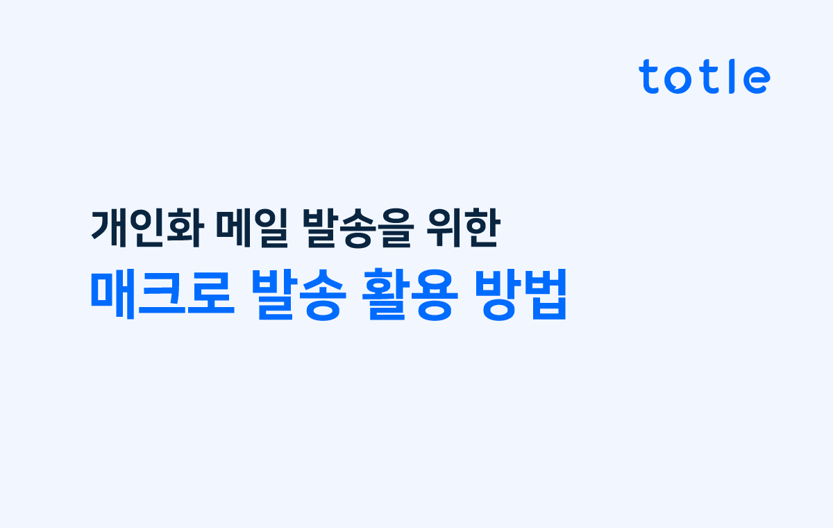 매크로 발송은 여러 명에게 동일한 이메일을 수신자의 이름, 회사명, 부서 및 직함 정보를 이메일 제목이나 본문에 반영해 개별적으로 전송해야 할 경우 활용할 수 있는 토틀의 기능으로 개별 발송 기능과 함께 활용할 수 있습니다.