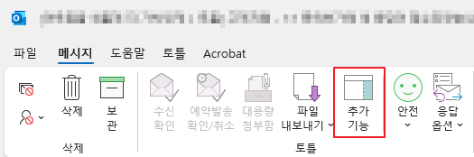2. 상단의 토틀 메뉴 중 추가 기능을 클릭해 우측의 메뉴 패널을 활성화 시킵니다.