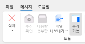 메모를 찾을 이메일을 선택한 후 토틀 상단 메뉴에서 추가기능을 클릭합니다.