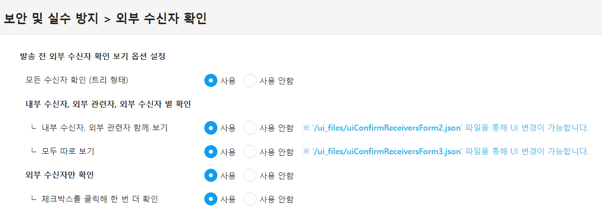 외부 수신자 확인 기능