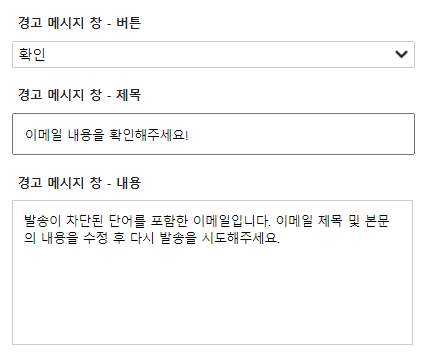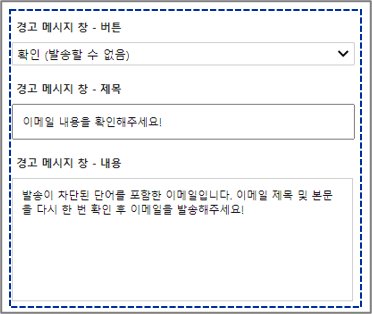 경고 메시지 창이 뜨는 이유를 설명하고 발송자에게 이메일의 수정을 요청하는 메시지를 입력해 활용할 수 있습니다.