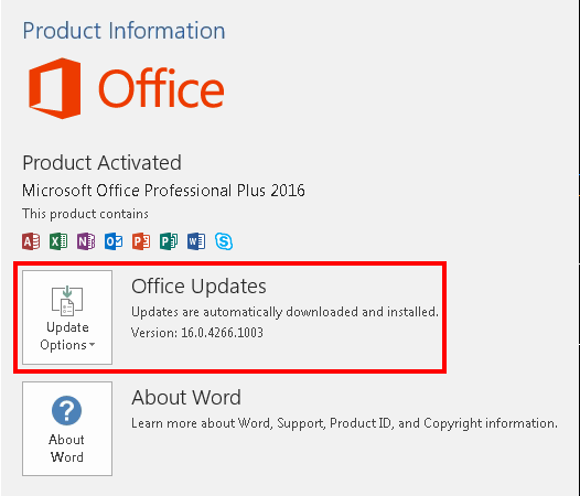 Microsoft Office 2016 Pro 버전 (16.0.4266)은 2015년 11월 발표된 버전으로 설치 후 업데이트를 진행하지 않은 버전입니다. 토틀을 오류 없이 설치 하려면 아래 방법을 통한 수동 업데이트가 필요합니다.