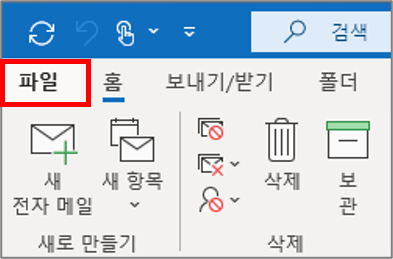 1. 아웃룩 상단 메뉴에서 파일을 클릭합니다.