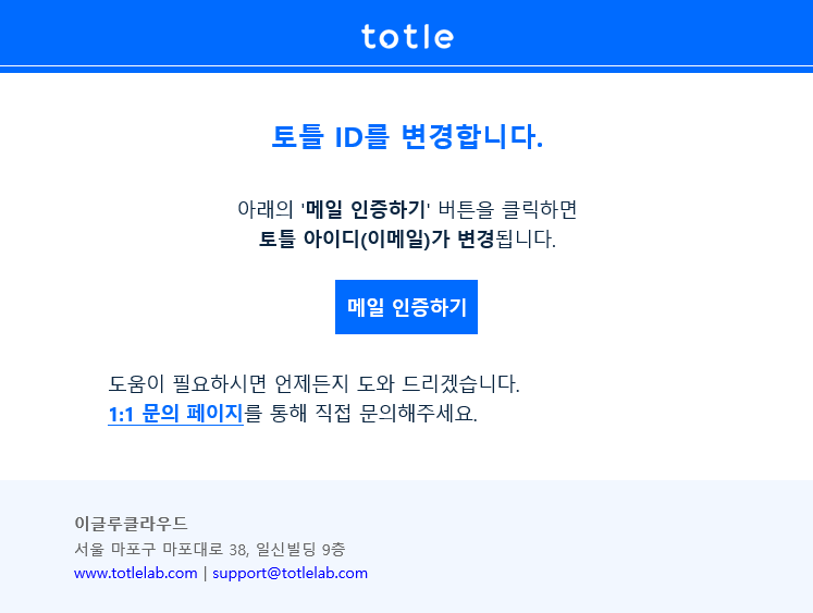 이 인증 이메일을 열어 메일 인증하기 버튼을 클릭해 아이디 변경을 완료합니다.