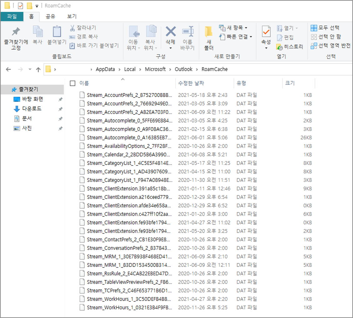 d. RoamCache 폴더를 더블클릭해 캐시파일들을 확인합니다.