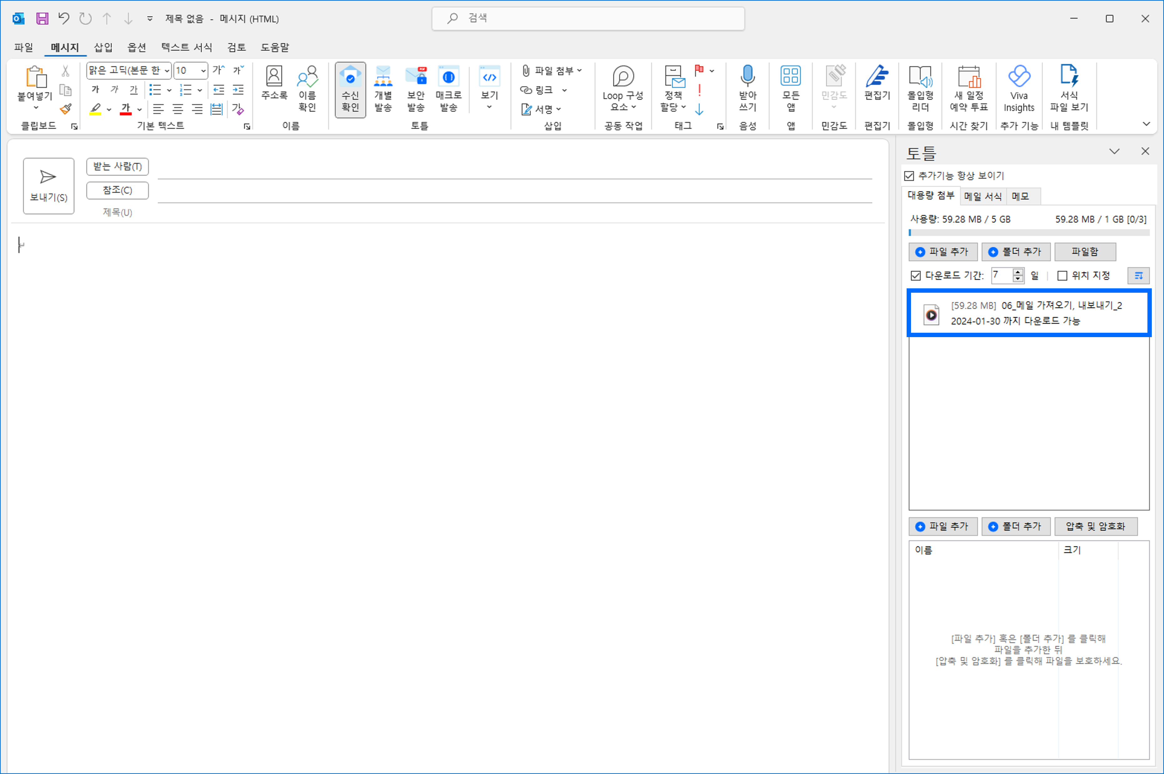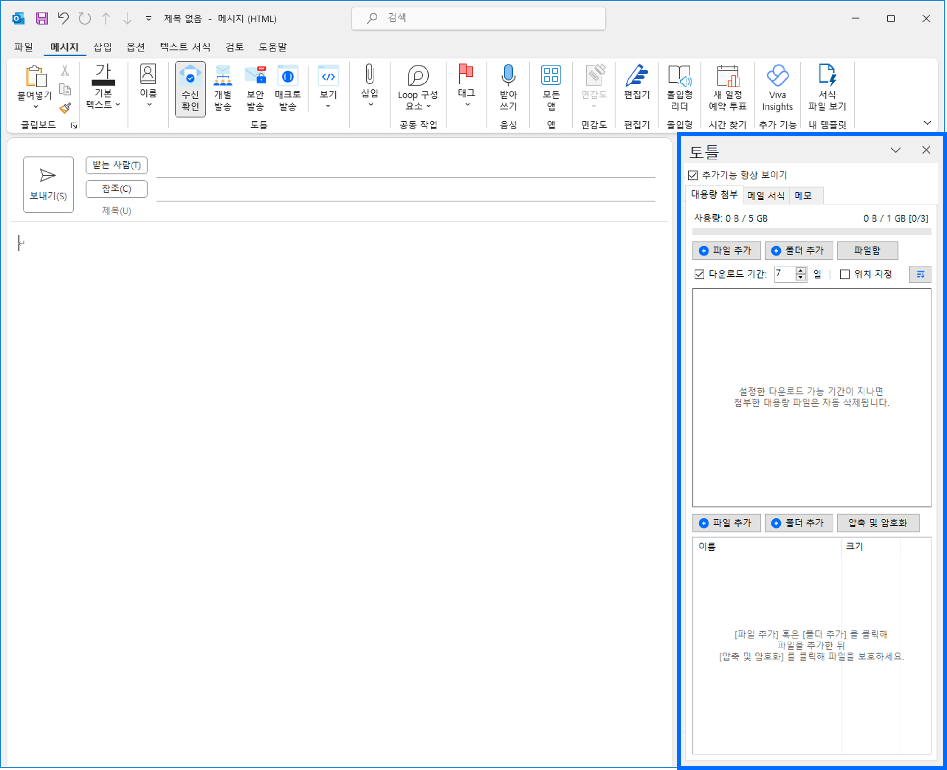 토틀로 아웃룩에 대용량 파일 첨부하기