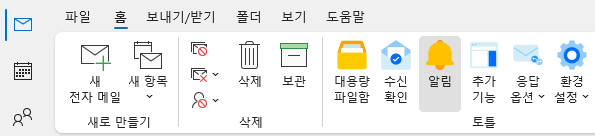 👉 아웃룩 초기 화면의 토틀 메뉴에서 알림을 클릭합니다.